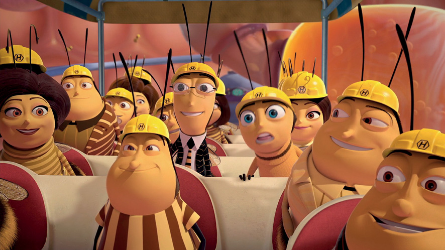 Ostatnią animacją, a zarazem pierwszą stworzoną w technice komputerowej, w niniejszym przeglądzie pszczelich produkcji jest cieszący się ogromną popularnością internetowych wyszukiwarek „Bee Movie” (Film o pszczołach), który swoją premierę miał w 2007 r. Produkcja wytwórni DreamWorks Animation, której reżyserami byli Steve Hickner i Simon J. Smith, jest tak naszpikowana kodami kulturowymi, iż aby ująć je wszystkie, należałoby stworzyć osobny artykuł. Dlatego poniżej zostaną przytoczone najistotniejsze lub najbardziej zaskakujące z nich. Animacja rozpoczyna się sekwencją scen wprowadzających widza w przedstawiane mu życie pszczół wewnątrz ula, gdzie proces humanizacji pszczelich bohaterów osiągnął niespotykany wcześniej poziom. Właściwie w większości ujęć zdecydowanie bardziej przypominają oni ludzi niż owady.