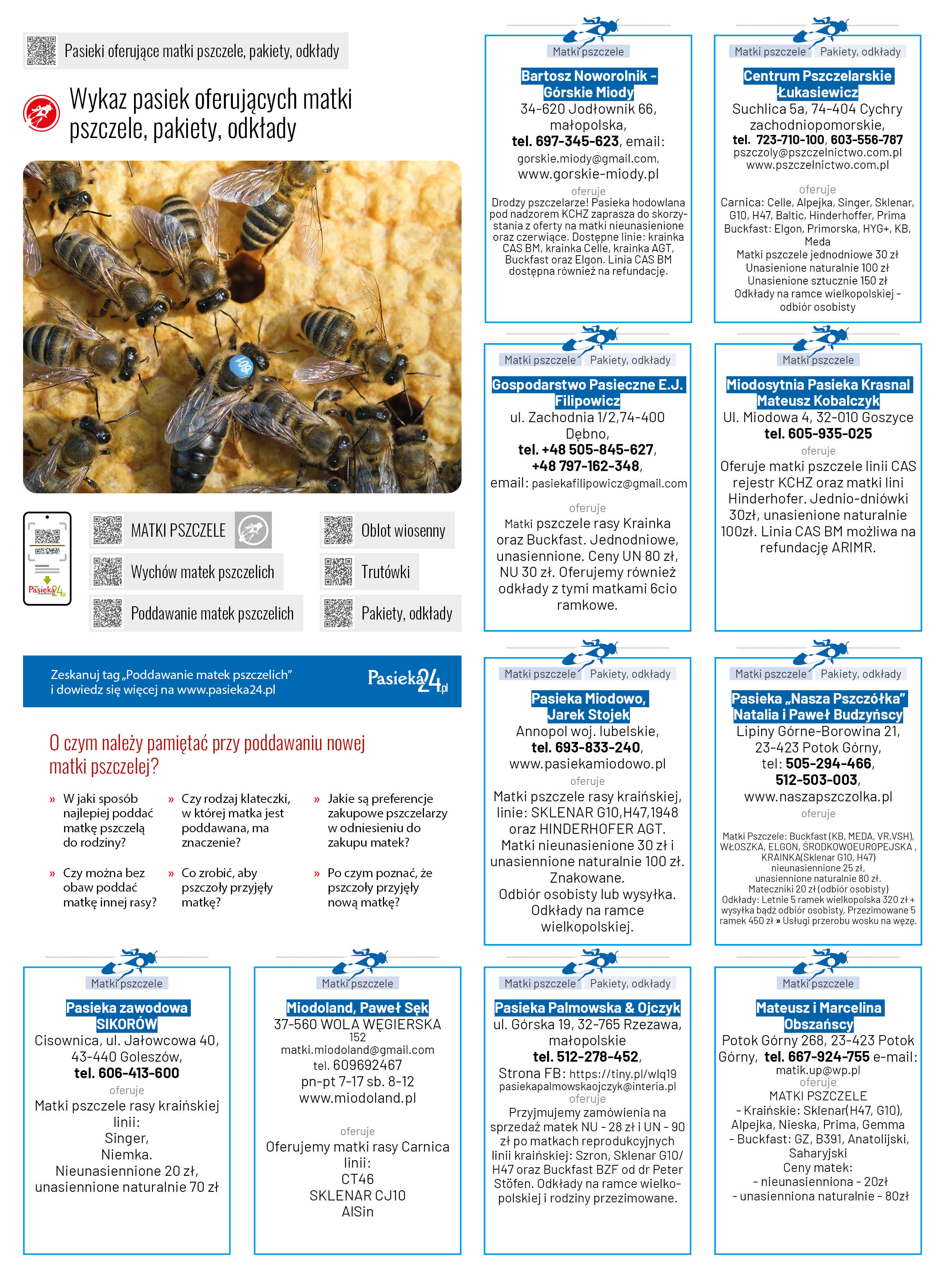 Wykaz pasiek oferujących matki pszczele, pakiety, odkłady