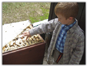 Od pierwszego kwietniowego przeglądu podejmuję zabiegi mające na celu niedopuszczenie do dalszego rozwoju warrozy. Wszystkie korpusy z przezimowanymi rodzinami obracam o 180 stopni. Z każdej rodziny zabieram po dwie ramki, z których pszczoły przez zimę wybrały pokarm. W ich miejsce, obok czerwia, zawieszam zmagazynowane wcześniej plastry z zapasem. Na tym kończą się moje czynności przy pszczołach tego dnia.