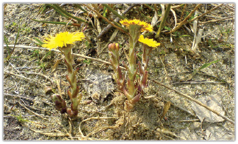 Podbiał to roślina wieloletnia o żółtych kwiatach. Kwitnie od marca aż do maja. Pierwsze wyrastają kwiaty, liście znacznie później. Podbiał można sadzić wokół uli i pod nimi, jeśli są to ule stojące na nóżkach. Podbiał rośnie na ziemiach klasy 5 i 6, często występuje na żółtym piasku. Kwiaty można sadzić pod drzewami liściastymi, takimi jak akacja, lipa. Podbiał rośnie nad rowami blisko zbiorników wodnych. Będzie dobrym pożytkiem rosnącym blisko pasieki, dającym pszczołom możliwość dojścia do siły z początkiem wiosny.