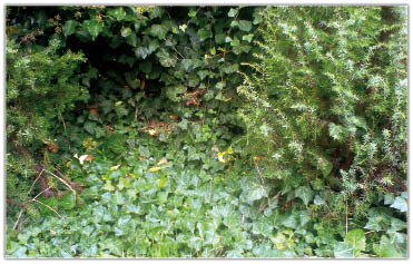 Bluszcz pospolity zimozielony rosnący w lasach, na rumowiskach, opuszczonych ogrodach jest doskonałą rośliną, która pozwoli zasłonić posesję np. od strony sąsiadów. Stwarza pewien mikroklimat zacisza, spokoju i intymności. Nadaje się również do osłonięcia pasieki przed wiatrem. Bluszcz jest rośliną ekspansywną, gęsto się rozrasta. Można go przycinać w sierpniu dla zagęszczenia i nadania takiego kształtu, jaki chcemy.