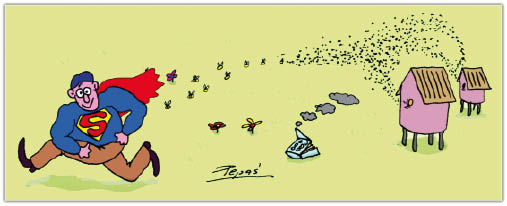 I tak wymienialiśmy swe uprzejmości, aż do pewnego popołudnia, gdy nie wiedzieć czemu, szatan wstąpił w moje pszczoły. Na oczach sąsiadki, niestety, składałem w pośpiechu korpusy i zrazu zwolna, acz przyspieszając z każdym krokiem, jąłem się oddalać od uli, gubiąc już w biegu dłuto, podkurzacz i inne utensylia. Co gorsza, kilka pszczół dostało się przez niedbale założony kapelusz pod bluzę, dając wyraz swemu niezadowoleniu nie tylko brzęczeniem.