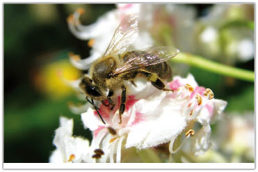 W Polsce sadzony jako jedno z pierwszych drzew ozdobnych obcego pochodzenia, już od XVII wieku. Kwiaty kasztanowca zebrane w stożkowate kwiatostany w formie wiechy wabią nie tylko pszczołę miodną, ale także trzmiele oraz dzikie pszczołowate. Płatki korony kwiatu są białe z żółtymi plamami u nasady.