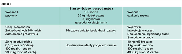 Okazuje się, że po jakimś czasie zwiększa również produkcję miodu o 100%, ale wosku aż 233%. Dalsza analiza kieruje uwagę na inne wskaźniki. Pszczelarz w wariancie 1. musi zatrudnić do obsługi następną osobę, zaś w wariancie 2. nie ma takiej potrzeby.