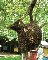 Gwałtowne zwiększenie ogólnej objętości ula aż o 1/3 powodowało przerwanie nastroju rojowego. Na 28 utworzonych wieżowców tylko jedna rodzina wyroiła się. Ponadto ogromna większość z nich zebrała podwójną ilość miodu w porównaniu do uli z jedną nadstawką. Należy obiektywnie przyznać, że nie każdy pszczelarz posiada zapasowe nadstawki, no i odpowiednią ilość zapasowych ramek. Wracając do rojenia się pszczół, to w tym sezonie roje były wyjątkowo duże i z powodzeniem można je było wykorzystać do założenia nowych rodzin. 5-6 kg roje nie należały do rzadkości (fot. nr 4) i wcześnie nasypane nie tylko odbudowywały dużą ilość węzy, lecz również dały po kilkanaście kg miodu.