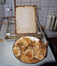 Fot. 2. Ramka z miodem na ociekaczu.