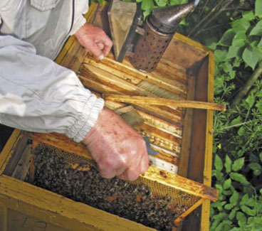 Wczesną wiosną trzeba zmniejszyć gniazdo przez wyjęcie zbędnych ramek, tak aby skrajna była obsadzona „na czarno” i dobrze je ocieplić ze wszystkich stron. Pokarm z wyjętych ramek można zwrócić przez odsklepienie go i wstawienie tej ramki przy zatworze (Moja Pasieka, wyd. III, str.20).
