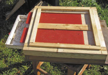 Kolejną funkcją tak wykonanej dennicy jest możliwość zainstalowania poławiacza pyłku. W tym wypadku mogę pomieścić w niej szufladkę (np. styropianową o grubości około 38 mm), a na niej umieścić drewniany poławiacz pyłku, którego prototyp skonstruowałem z kolegą w 2005 roku.