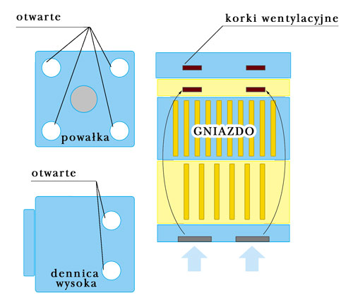Prawidłowy przebieg zimowli rodzin pszczelich zależy od kilku czynników. Jednym z nich jest ocieplenie ramek gniazda zimującej rodziny z równoczesnym umożliwieniem samoistnej wymiany wilgotnego powietrza, czyli wentylacji.