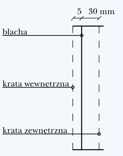 W odległości 3 cm od kraty kosza montuje się blachę, a 5 mm przed blachą drugą kratę. Ramka w koszu zewnętrznym jest trochę wyżej od ramki i blachy w koszu wewnętrznym, aby można było ją łatwiej wyjąć. Widać to na załączonych rysunkach.