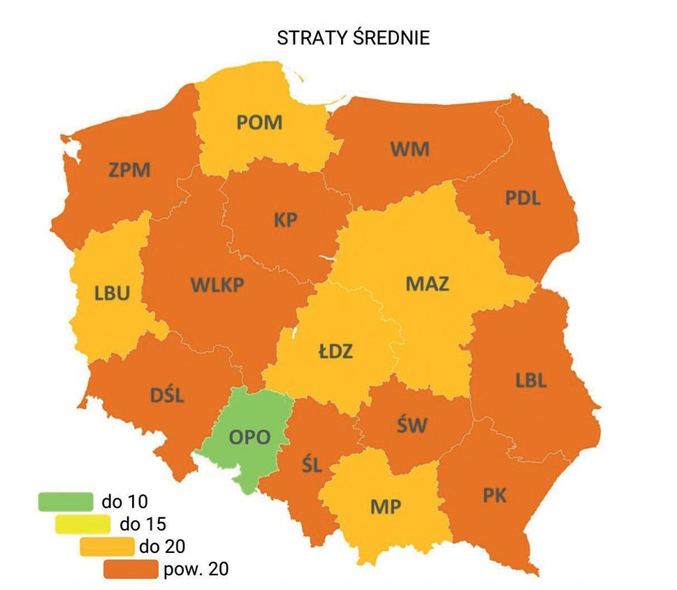 Z artykułu dowiesz się m.in.: ile proc. wynosiły straty rodzin pszczelich po zimowli 2023/2024; w której kategorii straty były najdotkliwsze; w których województwach straty były największe, a w których najmniejsze.
