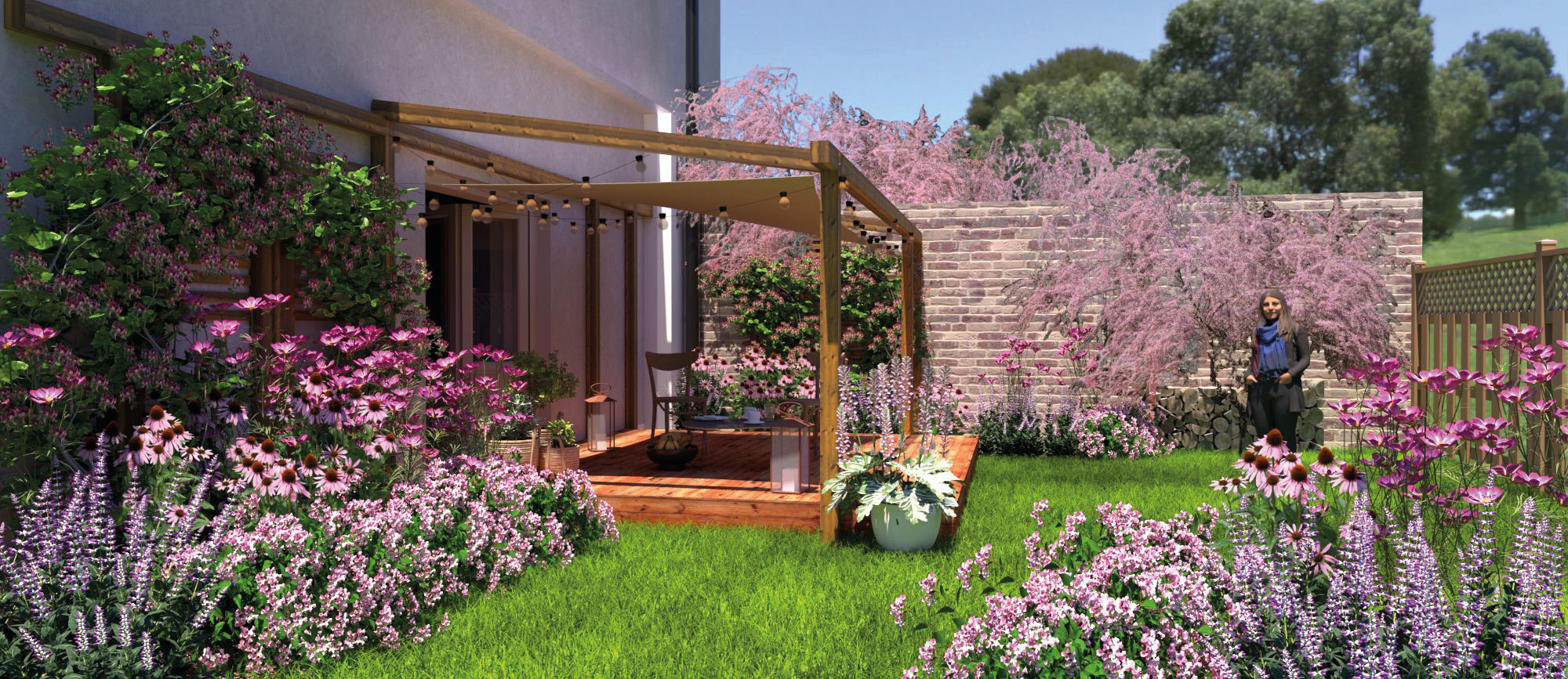 Projekt i opis rabaty przy ścianie wodnej w ogrodzie – dobór roślin wilgociolubnych, sposoby aranżacji oraz wpływ wody na zwiększenie bioróżnorodności i mikroklimatu strefy zielonej.