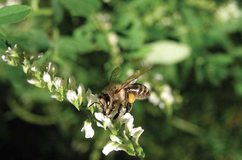 należy do dobrych roślin miododajnych, lecz wydajność plantacji przeznaczonej na paszę jest bardzo mała, ponieważ kosi się rośliny przed kwitnieniem. Ocenia się, że pszczoły mogą zebrać z lucerny ok 70% produkowanego przez nią nektaru. Wysiewa się 10-20 kg/ha.