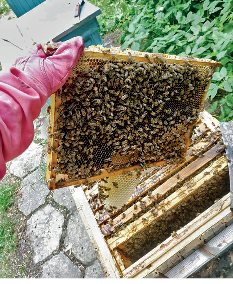 Fotografie 7. Mutarea pieptenelui cu resturile de mâncare, puiet și albine. Fotografie A. Gajda