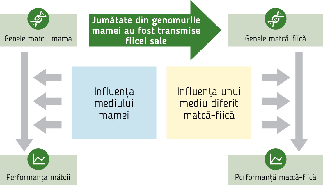 Figura 1. Relația dintre performanța matca și matca-fiică.